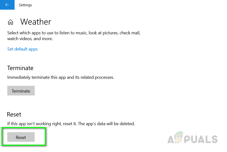 In this method, we will reset the Weather app and then update it from the Microsoft Store. Resetting the Weather app will remove all the updates and will restore the default version which was present at the time of installation so if any updates had caused the Weather App to stop functioning will be rolled back. After that, we will make sure that the Microsoft store is set to update the applications automatically.