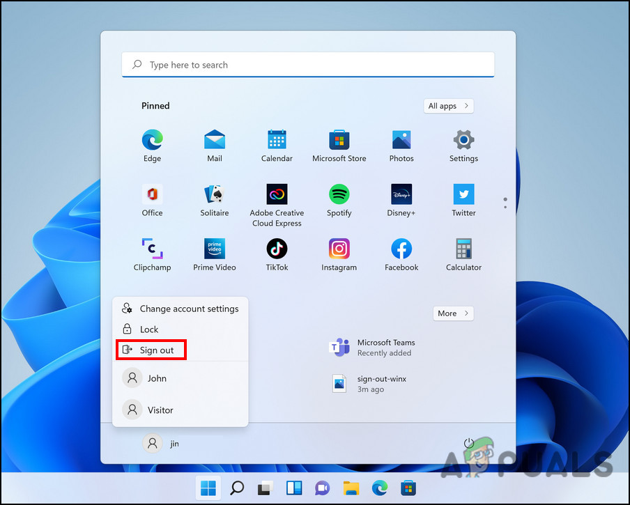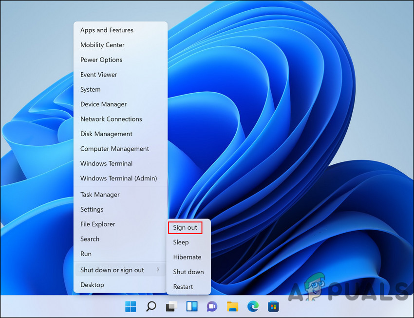 Click Sign Out - Alternatively, you can also press Windows + X keys together to open WinX menu.