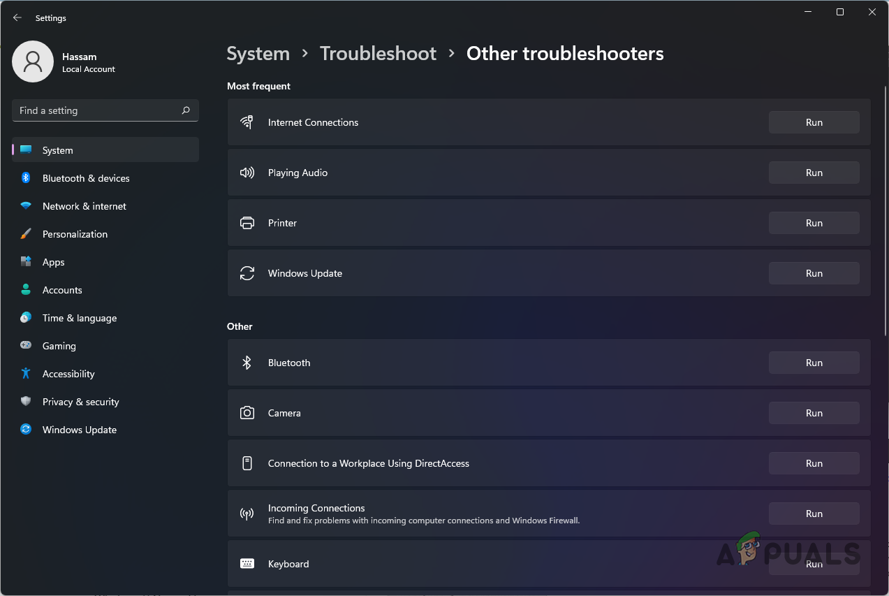 List of Troubleshooters - Wait for the troubleshoot to finish running. Check the diagnosis results to see if the issue has been detected or fixed.