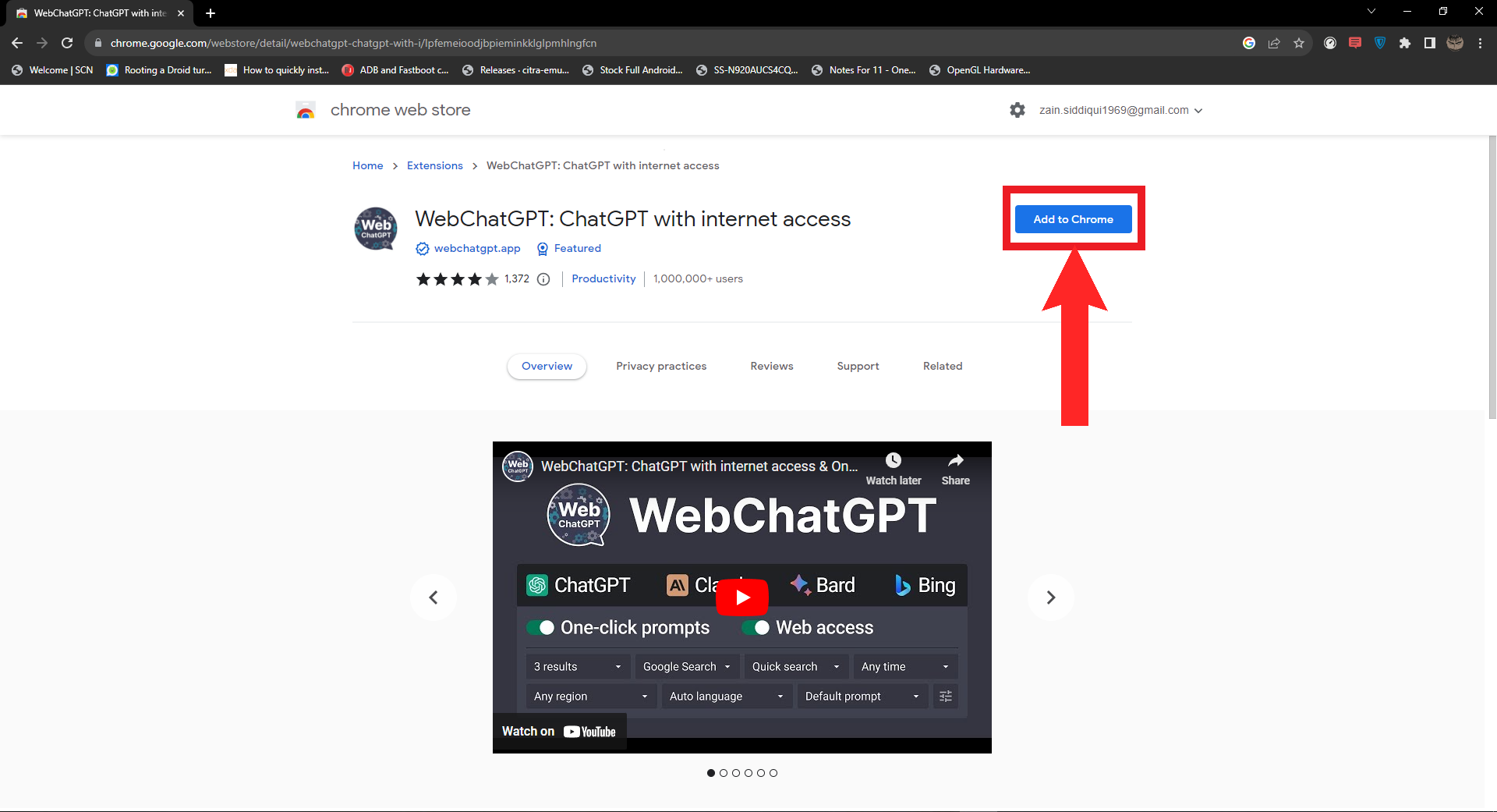 Installing WebChatGPT from the Chrome Web Store