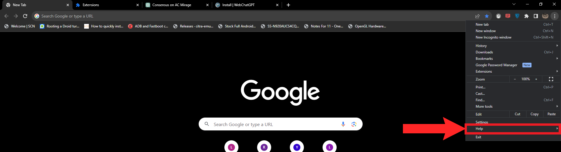 The three vertical dots represent the “More option” - From the drop-down menu, hover your cursor on the Help option.