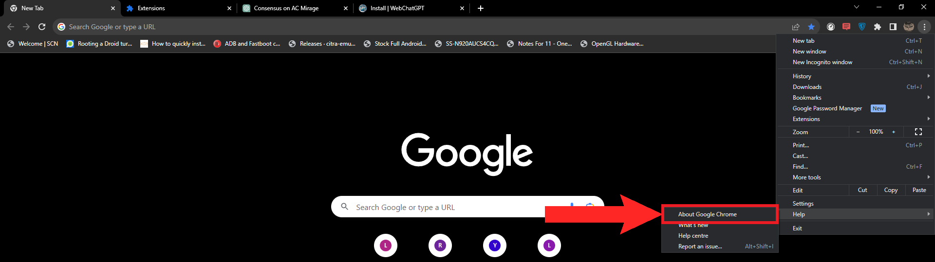 Hover your cursor on “Help” - Another drop-down menu will appear. Click on About Google Chrome.