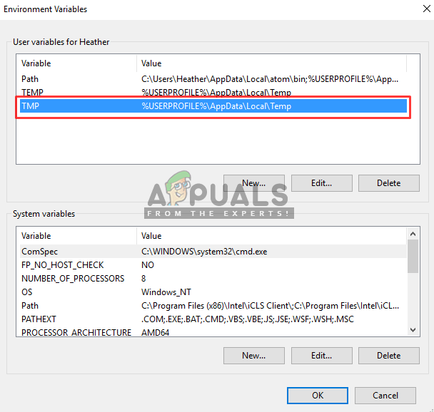 Location of temp files in environment variables - Save the changes and restart your computer.