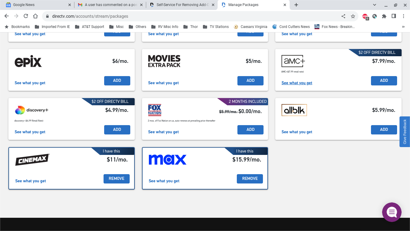 - For DIRECTV Satellite subscribers: Follow the instructions provided in the DIRECTV Satellite Support article to add a Premium channel to your package.