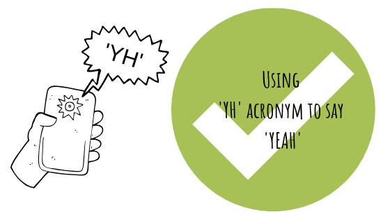 Now instead of writing the whole word ‘yeah’, you can simply write ‘YH’ as an answer to a question that requires a ‘yes’ or ‘no’ answer.