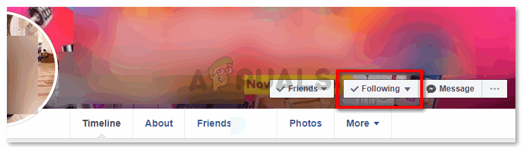 - You will have to go to the profile for the friend whom you want to unfollow on Facebook. In the image shared below, notice the red rectangle that highlights the tab for ‘Following’. Click on the downward facing arrow here to see the dropdown list of options to choose from.