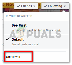 Go to the Facebook profile of the person that you want to unfollow. - The dropdown list that appears will show you a tab for ‘Unfollow ‘ along with the name of your friend. If you want to stop seeing their posts on your Facebooks Newsfeed, then you must click on this.