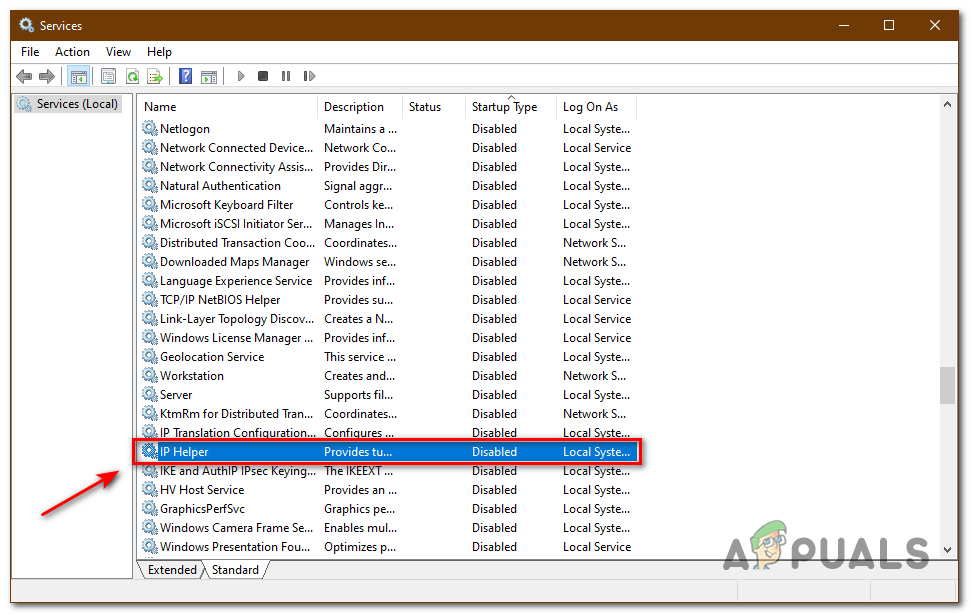 Services Launch - Find the Service IP Helper, click on it and press the stop & disable button