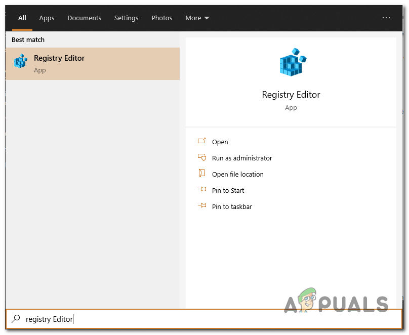 - Open your search bar, type Registry Editor
