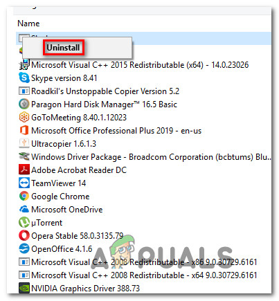 - When you see the ASUS GPU Tweak utility, right-click on it and choose Uninstall from the newly appeared context menu.