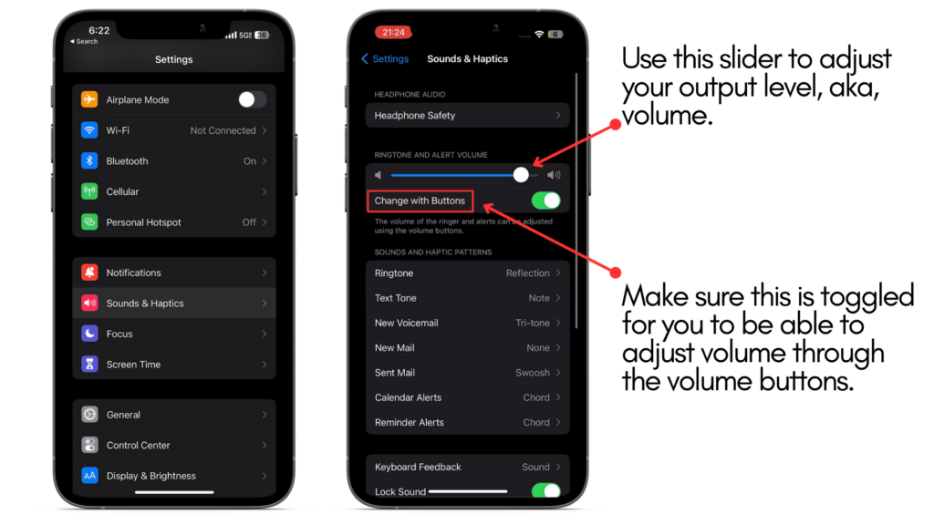 Open the Settings app and go to “Sounds & Haptics“. - To raise or lower the volume, use the slider. But also ensure that the option below it is enabled.