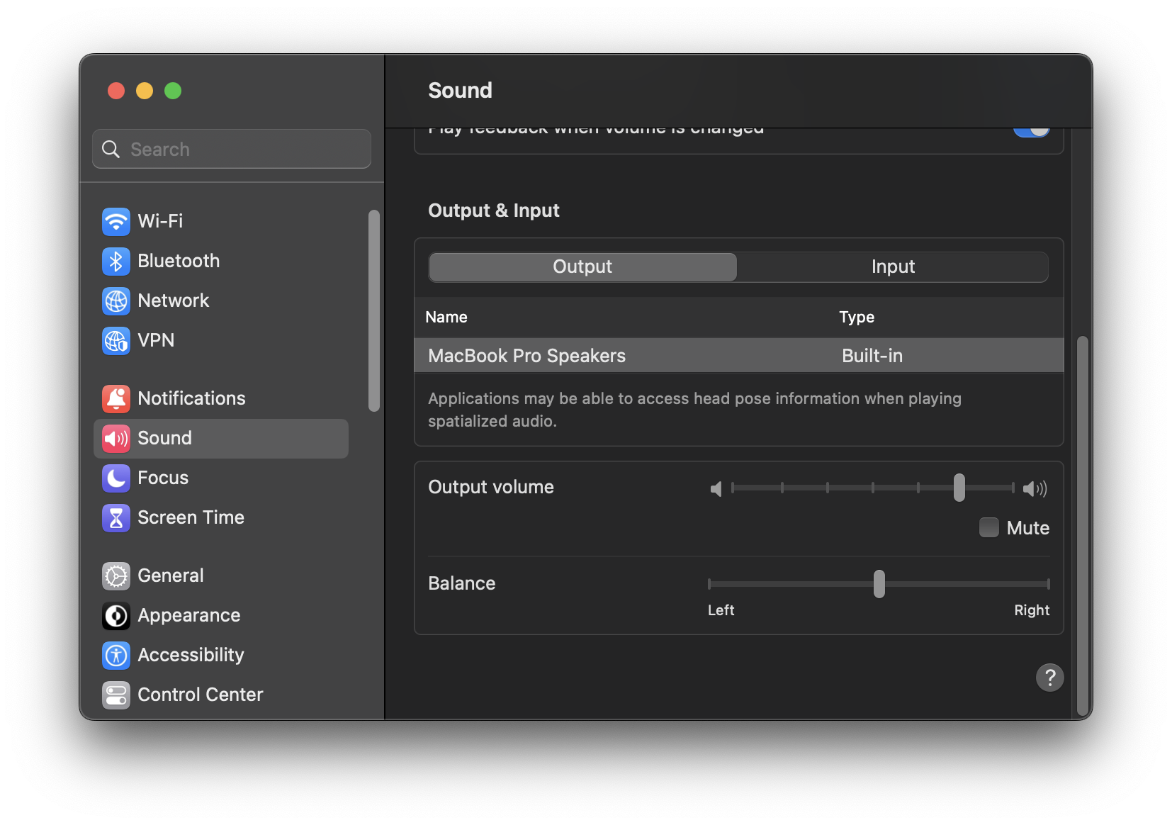 - Right below the slider, click on “Sound Preferences” (or Sound Settings on MacOS 13 and up)