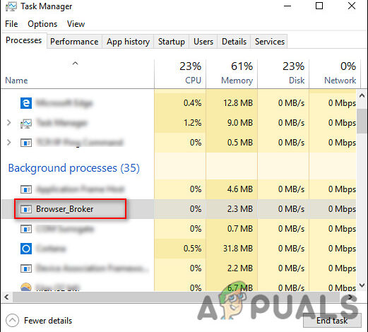- Inside the Task Manager window, head over to the Processes tab and locate Browser_broker. It is typically located under the Microsoft Edge process. Expand the Microsoft Edge process to access it.