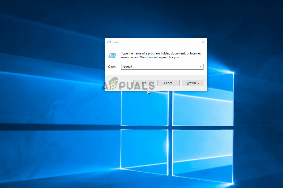 - Press Windows key + R to open up a Run dialog box. Then, type “regedit” and press Enter to open up Registry Editor. When you see the User Account Control screen, click on Yes to grant admin access.