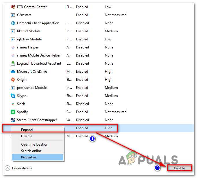 - Once you’re inside Task Manager, select the Startup tab from the list of tabs. Then, scroll down through the list of applications, locate WonderShare Studio, click on it and then click on the Disable button.