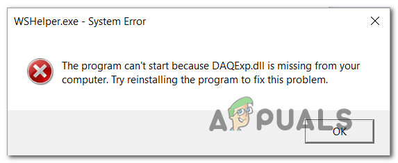 Some Windows have been reaching us for advice after being bothered by a recurring ‘DAQExp.dll is missing‘ error. While some users are reporting that they see this error popping up at every startup, for others it seems like the error message is appearing at random intervals. The issue is not exclusive to a certain Windows version since we’ve managed to verify instances of the issue occurring on Windows 7, Windows 8.1 and Windows 10.
