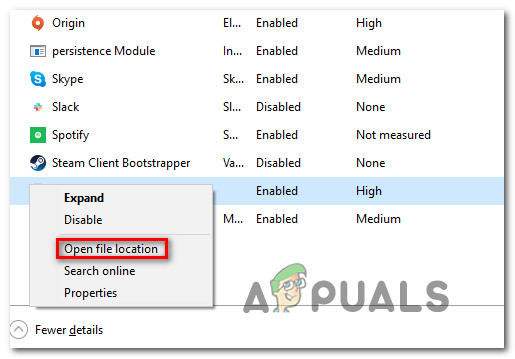 Disabling the Startup service - Next, right-click on the same service that you previously disabled and choose Open File Location from the context menu.