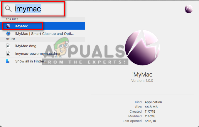 - Hold Command and Press Space to open Spotlight, type iMyMac to search and Enter to open the application