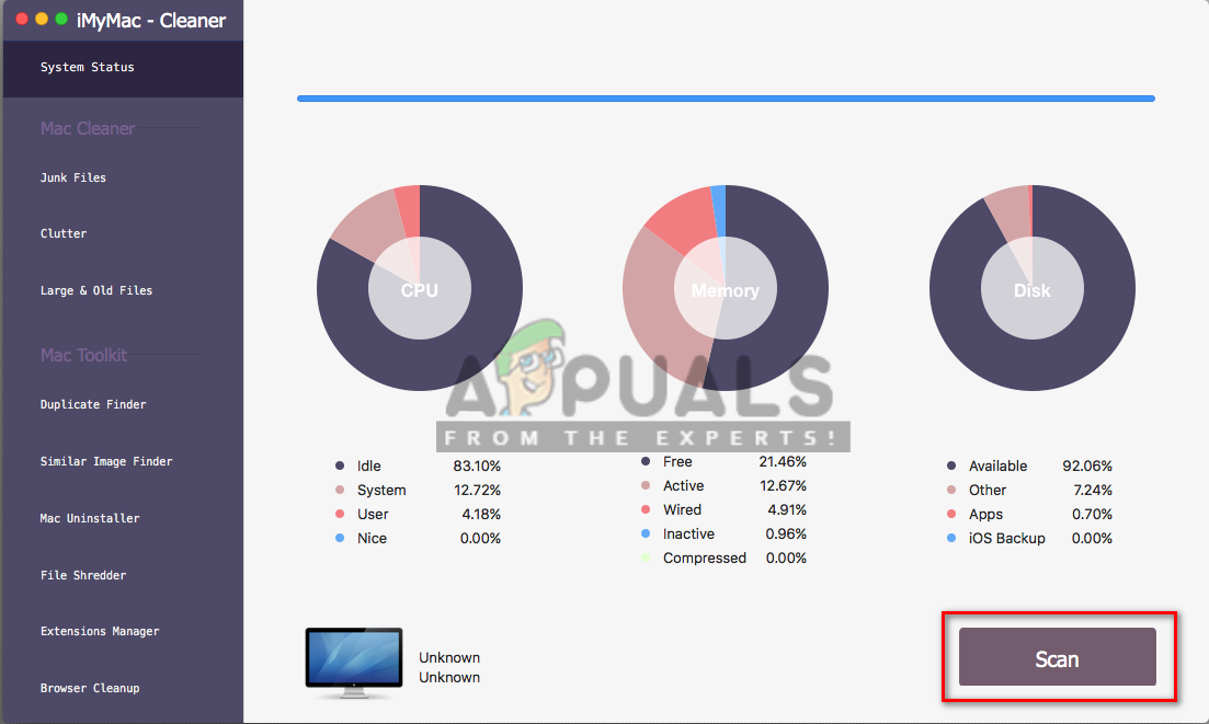 Opening iMyMac through Spotlight - Click the Scan button on the main screen of iMyMac