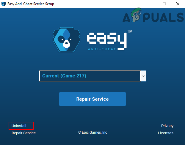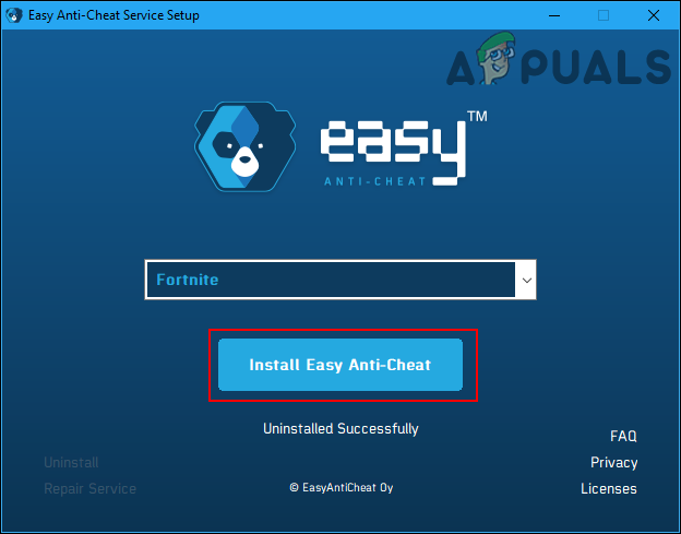 You can also Repair and Install Easy Anti-Cheat by using the same setup. The Repair Service button will be available when the Easy Anti-Cheat is installed on your system. The Install Easy Anti-Cheat button will become available after you uninstall it from your system or if it is already missing.
