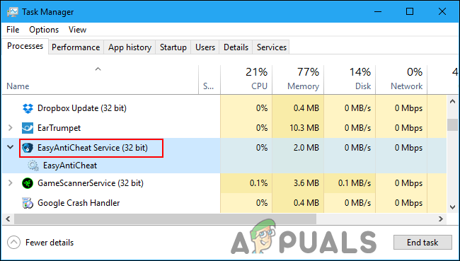 The process EasyAnitCheat.exe that you can find in the Task Manager will only be running alongside the games that require it. This starts automatically whenever a user starts a multiplayer game that requires this anti-cheat. Users may see a window of Easy Anti-Cheat before the game starts. It will always be running in the background until the game is running. Once the game is closed, this will also shut down along with it.