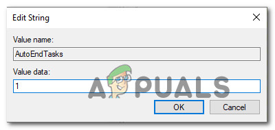 - Name this new value AutoEndTasks. After naming it, double-click the new value and set its data to 1. Click OK to save.