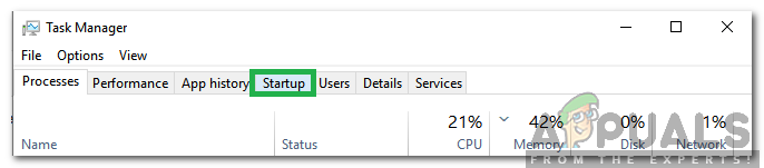 Opening Task Manager - Click on the “Startup” tab on the top.