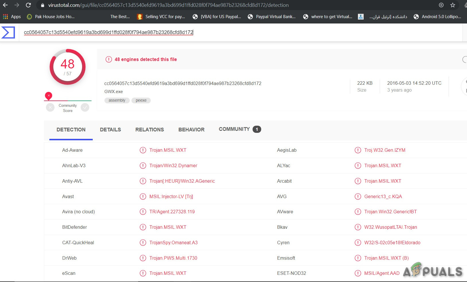 Multiple anti-virus engines have detected GWX.exe process as a threat, which is clearly shown by Screenshot: