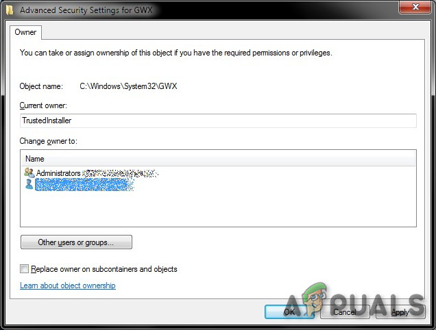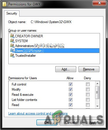 Change Permissions of Folder - Now, rename the GWX folder to something like GWX.old.