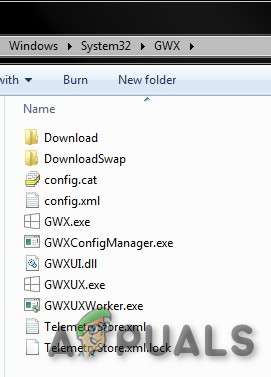 Exe files in GWX Folder - And you may also rename the four executable files. Just use any extension to cripple the executability of exe files. Problem solved.