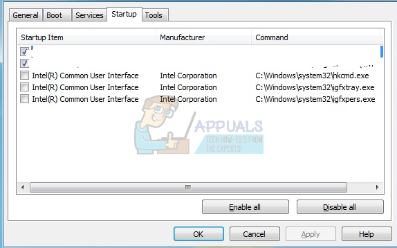 - Select the startup tab and uncheck “IgfxTray” present underneath IntelCorp or Intel. There are a lot of entries under Intel but if you hold your mouse over each one, you will find the process easily. You can also check the command to find the keyword of the process.