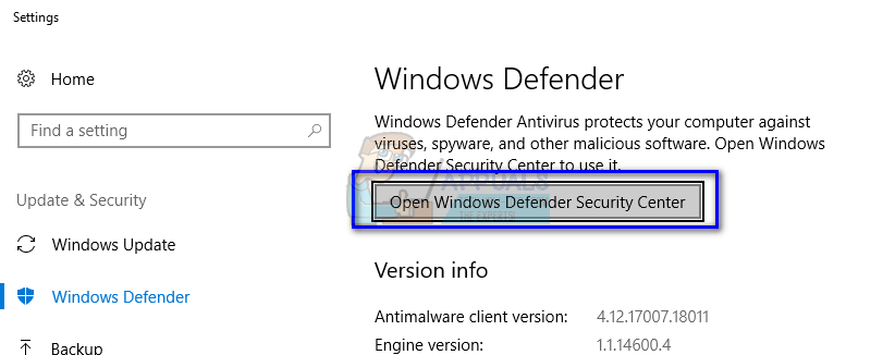 - Press Windows + S, type “Windows Defender Settings” in the dialogue box and open the application which returns on the result.
