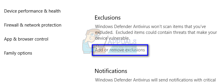 - Under the heading of “Exclusions”, click Add or remove exclusions.