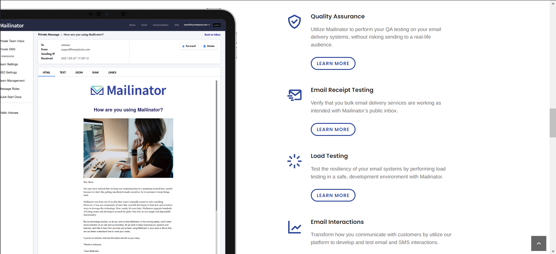 - Testing solutions: Mailinator has tools for people who build and check software. They can use these tools to make sure everything works right. It helps make checking software and systems easier.