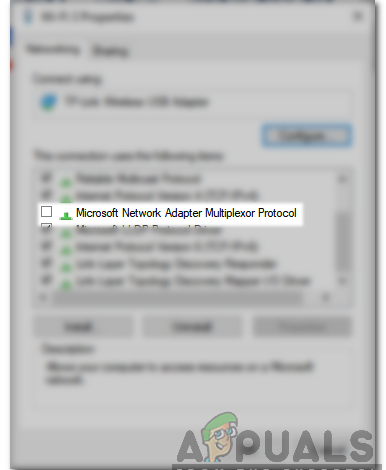 The Microsoft Network Adapter Multiplexor Protocol is listed in the “Items this connection uses” list for the Wifi Properties. This option is disabled for many people by default and it often gets them confused if disabling or enabling it has an effect on their connection or bandwidth. Actually enabling this protocol while the rest of the options in the list are enabled is not possible.