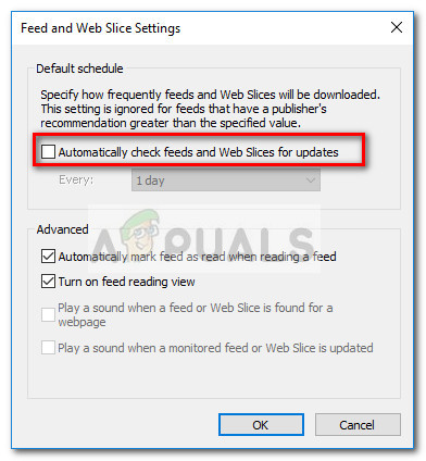 By removing the checkmark associated with Automatically check feeds and Web Slices for updates, you’ll also remove the User Feed Synchronization task from Task Scheduler.
