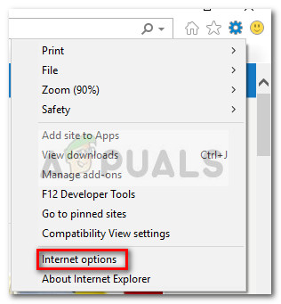 - Open Internet Explorer, click on the setting wheel and click on Internet Options.
