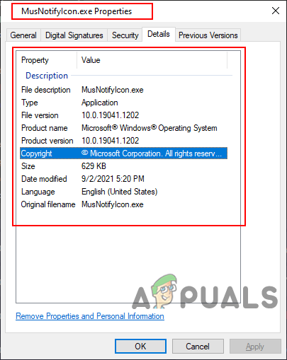 The MusNotifyIcon.exe or Modern Update Security Notify Icon is a file that belongs to the Microsoft Windows operating system. As the name sounds, it simply shows the notification icon for Windows updates. The executable can be found in the “C:\Windows\System32” directory. You can also right-click on the MusNotifyIcon.exe and choose the Properties option, then check the details of the product. You will be able to see the Microsoft Windows signature on the file. This appears when there are pending Windows updates on your system.