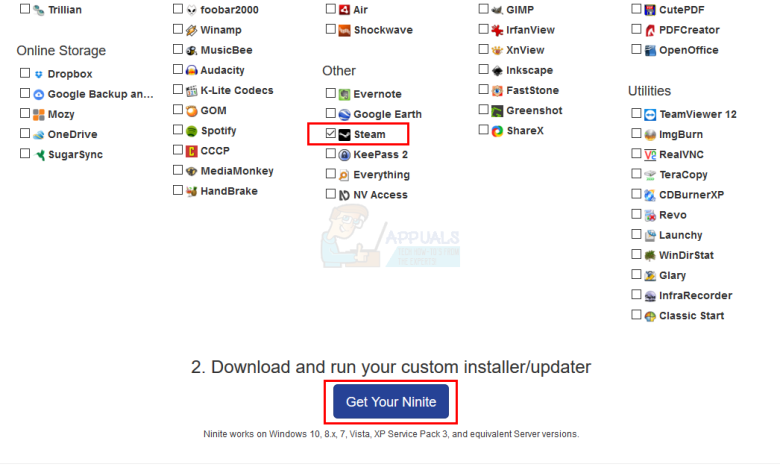 - Scroll down and select Get your Ninite. This will download your customized installer