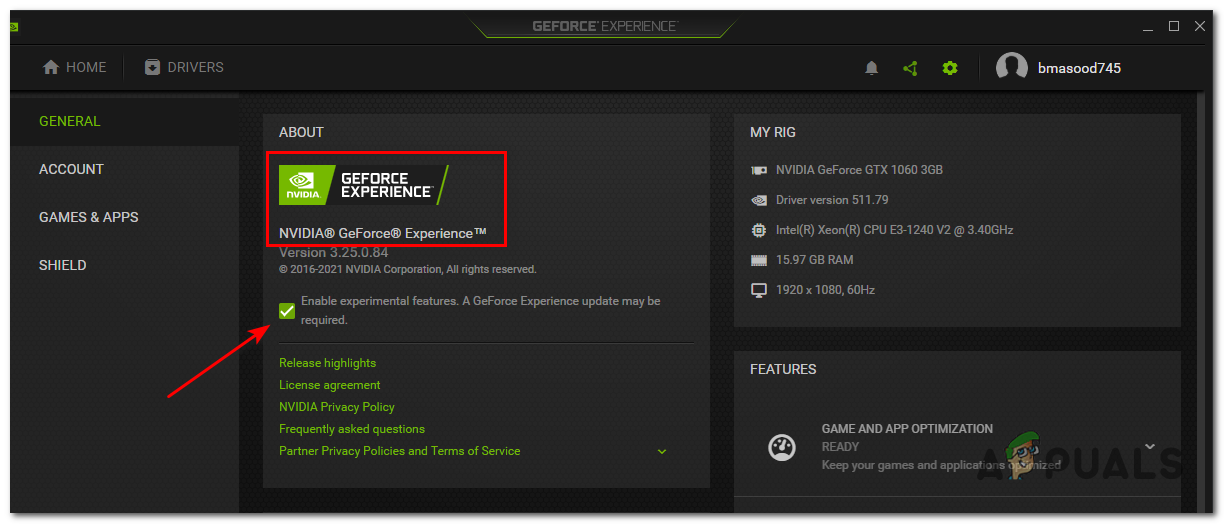 - Open GeForce Experience