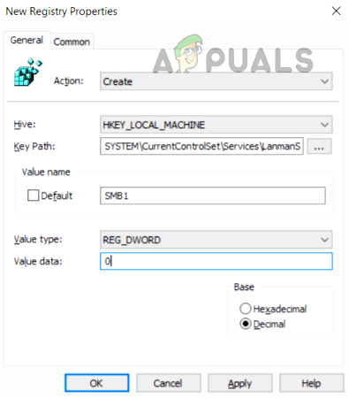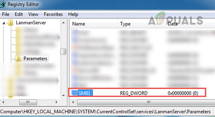 Set the Value of SMB1 to 0 in the Registry Editor - Then, in the right pane, double-click SMB1 and set its value to 0. Some users, like Windows 7 may have to create the SMB1 DWORD (32-bit) value and set its value to 0.