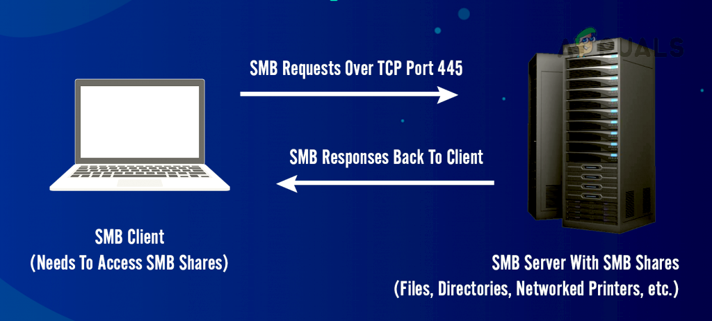 In the simplest form, SMB client machines connect to an SMB server using the SMP port (port 445) to access SMB-based shares after successful SMB authentication. Once an SMB connection is established, file collaboration, printer sharing, or any other network-based operation can be performed.
