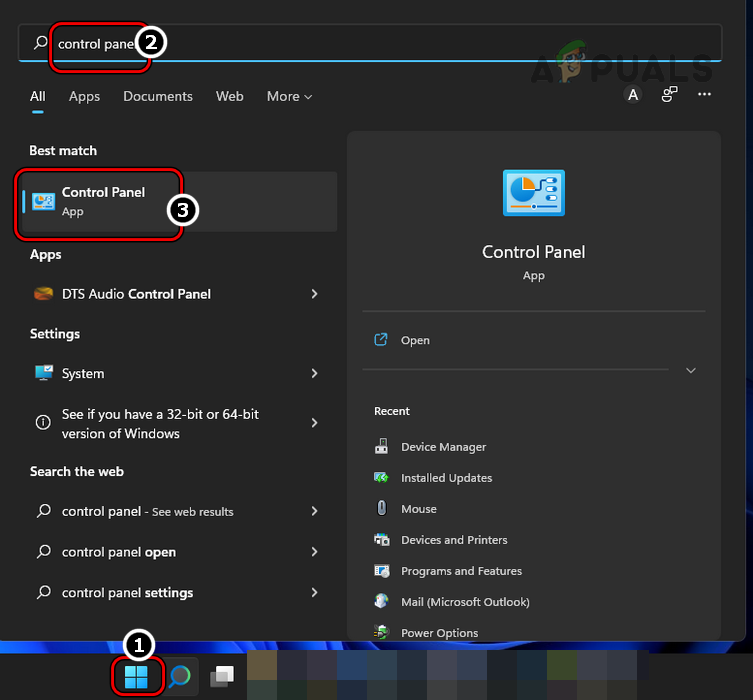 - Click Windows, search and open for Control Panel.