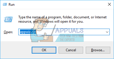 - Type ‘appwiz.cpl’ and hit enter to open the Programs and Features window