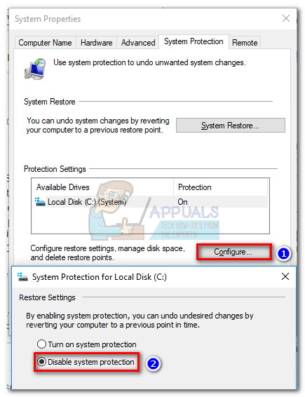 Once you’re there, click the Configure button under Protection Settings and set the Restore Settings to Disable system protection. Once you hit Apply, System Restore will be disabled permanently and the high-usage of srtasks.exe should not be a problem anymore.