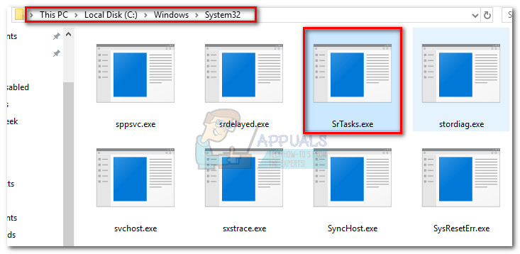 Note: Srtasks.exe is located in C:\Windows\System32 and is unique to Windows 10 and Windows 8 – the file doesn’t exist on Windows 7 or another older Windows version.