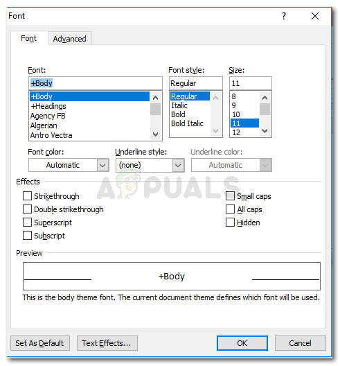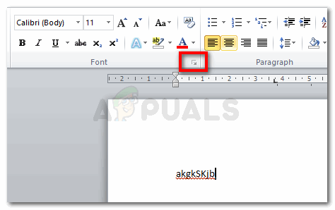 - Open the Font dialogue box by clicking on the arrow as shown in the image below.