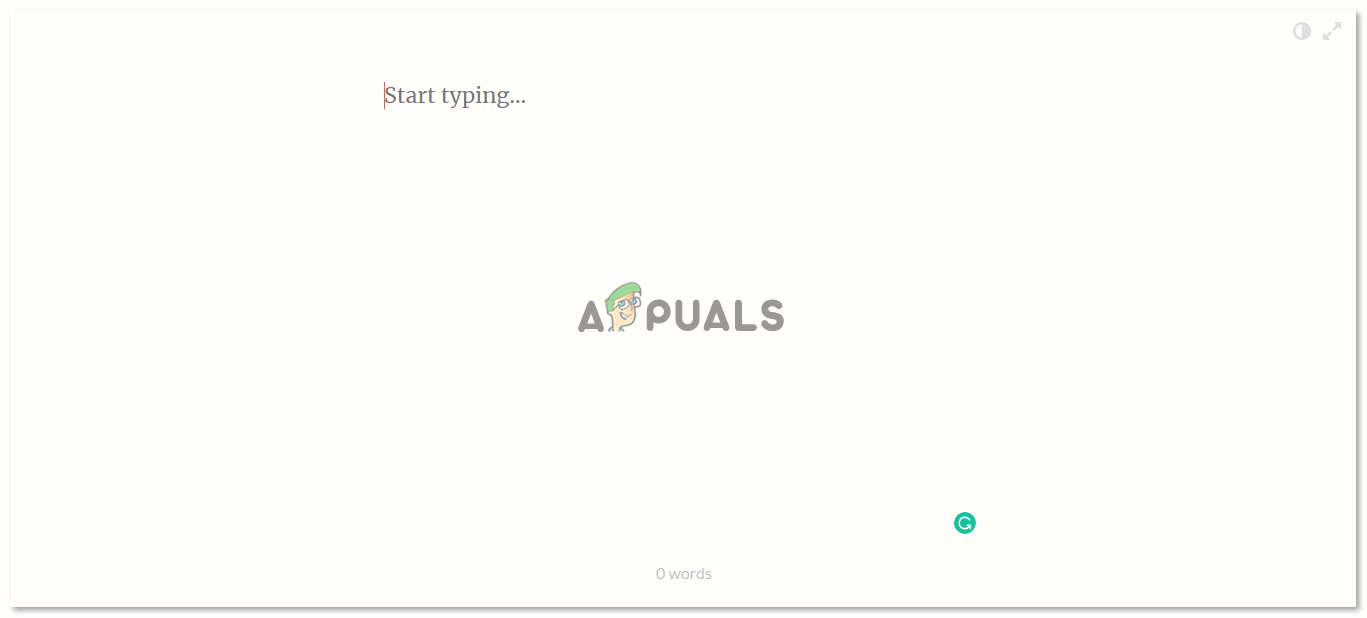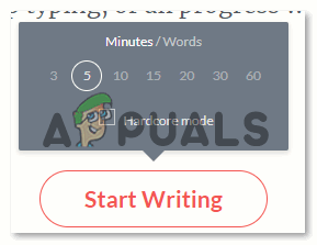 With the minimum and maximum numbers of writing sessions, you surely will enjoy giving your writing this experience and would definitely be amazed at how good you can be. - Press the Start Writing tab once you have selected your session length. And be prepared after you have clicked this tab because your timer starts ticking right after you click this icon. And once the screen in front of you changes to the one as shown in the image below, just begin writing where it says ‘start typing’.