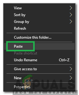 Clicking on the paste option - After the copying process is complete, press “Windows” + “R” to open the run prompt.