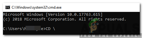 Typing in “CD \” in the command prompt - Type in the following command and press “Enter“.